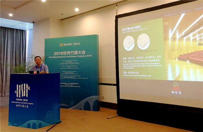 薛董以《竹建筑材料及其在城鎮(zhèn)化過(guò)程中的應(yīng)用潛力》為題,圍繞中國(guó)工業(yè)化以來(lái)企業(yè)運(yùn)用現(xiàn)代工藝技術(shù)及設(shè)備研發(fā)新的竹材產(chǎn)品,闡述在我國(guó)城鎮(zhèn)化建設(shè)過(guò)程中竹材新產(chǎn)品在室內(nèi)外的運(yùn)用以及未來(lái)的巨大潛力,結(jié)合豐富的案例展示了中國(guó)竹材產(chǎn)品的應(yīng)用成果及竹材應(yīng)用的發(fā)展趨勢(shì)。薛董的演講得到了來(lái)自世界各地的科研院所、高校、企業(yè)界的100多位代表的廣泛關(guān)注。